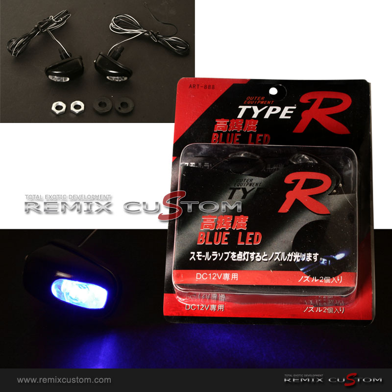 Windshield Washer Spray Nozzle with Blue LED Light. Customized with your parking lights or signal lights, anyway you want! This item is universal, fits all cars