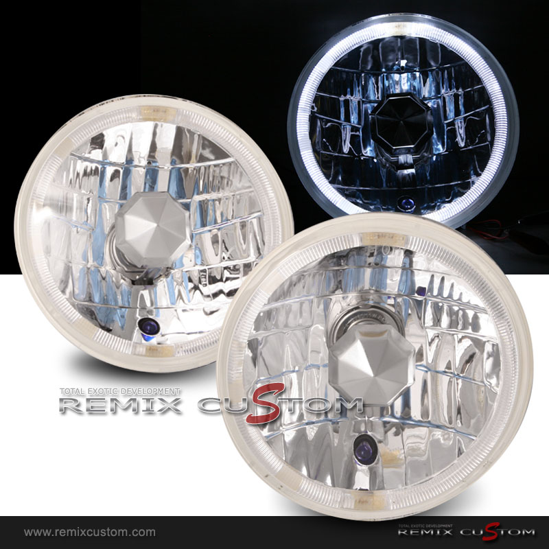 Universal 7" Halo Rim Round Lamp with H4 Super White Bulbs