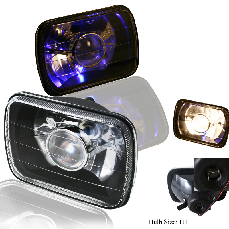 Black 7"x6" Projector Headlight with H1 Super White Bulbs