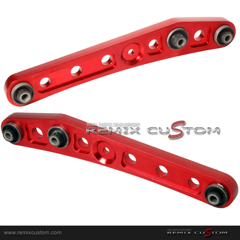Racing LCA's are forged from T-6061 Aluminum and are designed as direct replacements with a 3 lb. weight reduction over weaker stock components. These extremely strong and lightweight LCA's help reduce the amount of camber when lowering your vehicle's suspension. As a result, a wider wheel and tire combination can be used with little or no tire rubbing.