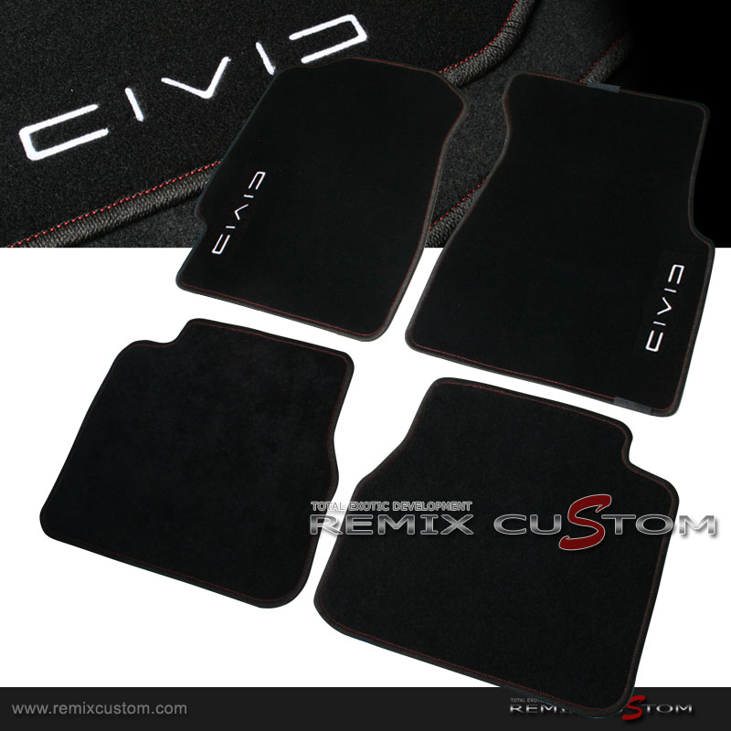92-95 Honda Civic 2/3DR Black/Red Stitch Floor Mats Carpet Front + Rear (4pcs)