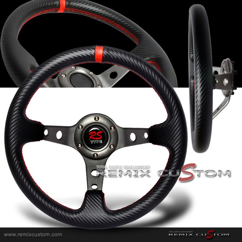 Carbon PVC Gunmetal Red Stitches Drift Deep Dish Steering Wheel