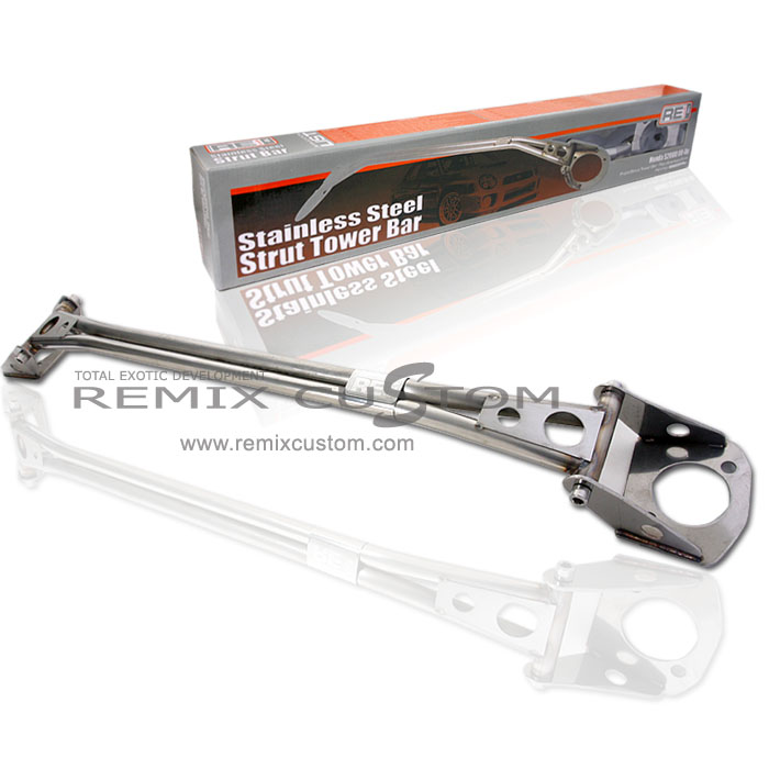RE-WORKS Front Strut Tower Bar are Designed To Reduce Chassis Flex To Improve Steering Response & Stability. For Better Handling Performance. Added Stability For Hard Cornering. Made of Quality Light Weight Aluminum Designed To Reduce Chassis Flex To Improve Steering Response & Stability. For Better Handling Performance. Added Stability For Hard Cornering.