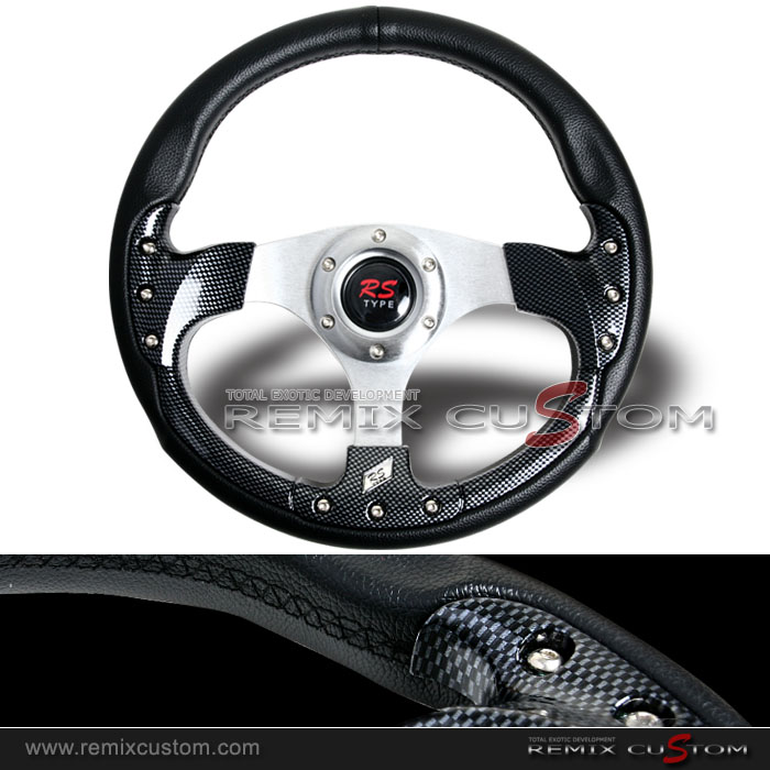 RS Style 320mm 2 Tone Black / Carbon Style Steering Wheel