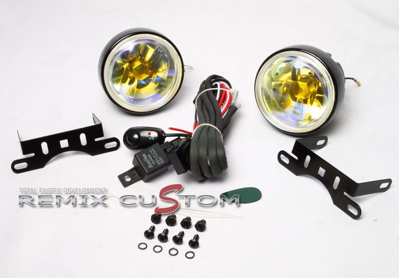 Comes with relay,switch brackets and bulbs. These easy