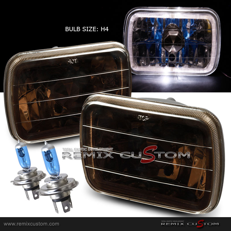 Universal 7" x 6" Diamond Cut Square Replacement LED Halo headlights - Smoke