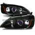 01 02 03 Honda Civic 2/4DR Halo Projector Headlights Black