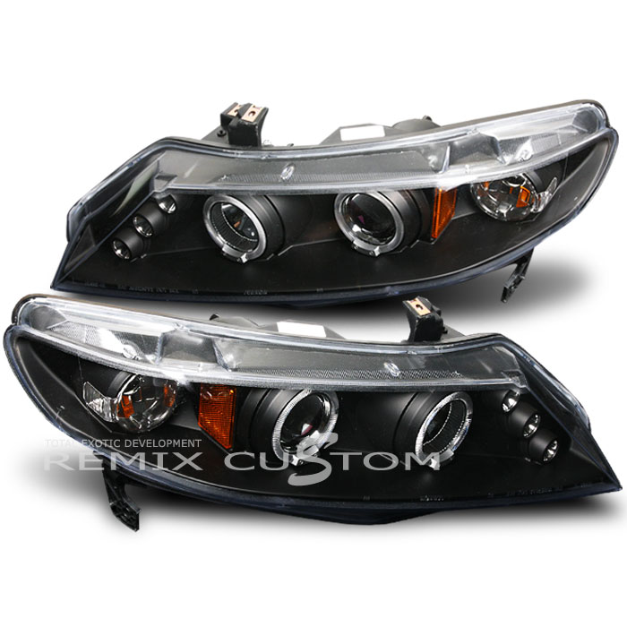 06 07 08 Honda Civic 4D Sedan Dual Halo Projector Headlights Black