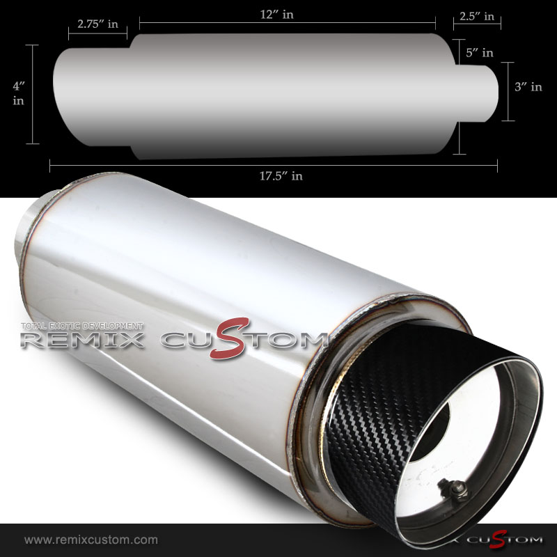 Universal 3" inlet / 4" Slant Carbon Tip Muffler