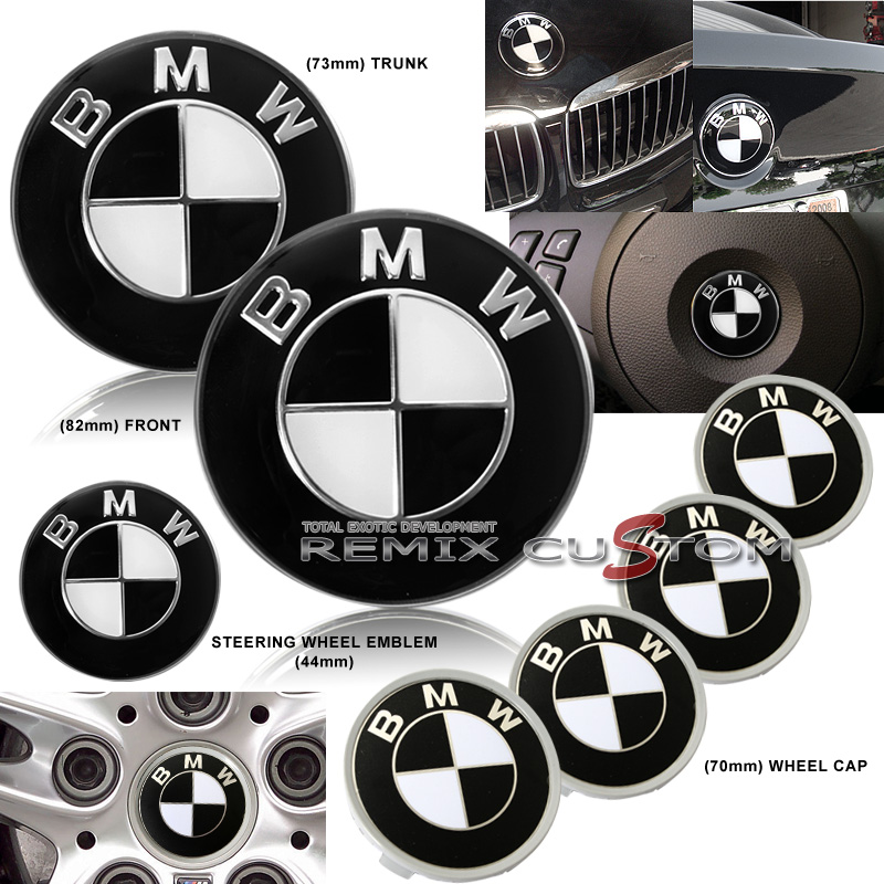 - BMW Emblems for Hood, Trunk, Steering Wheel and 4 Wheel Center Hub Caps
