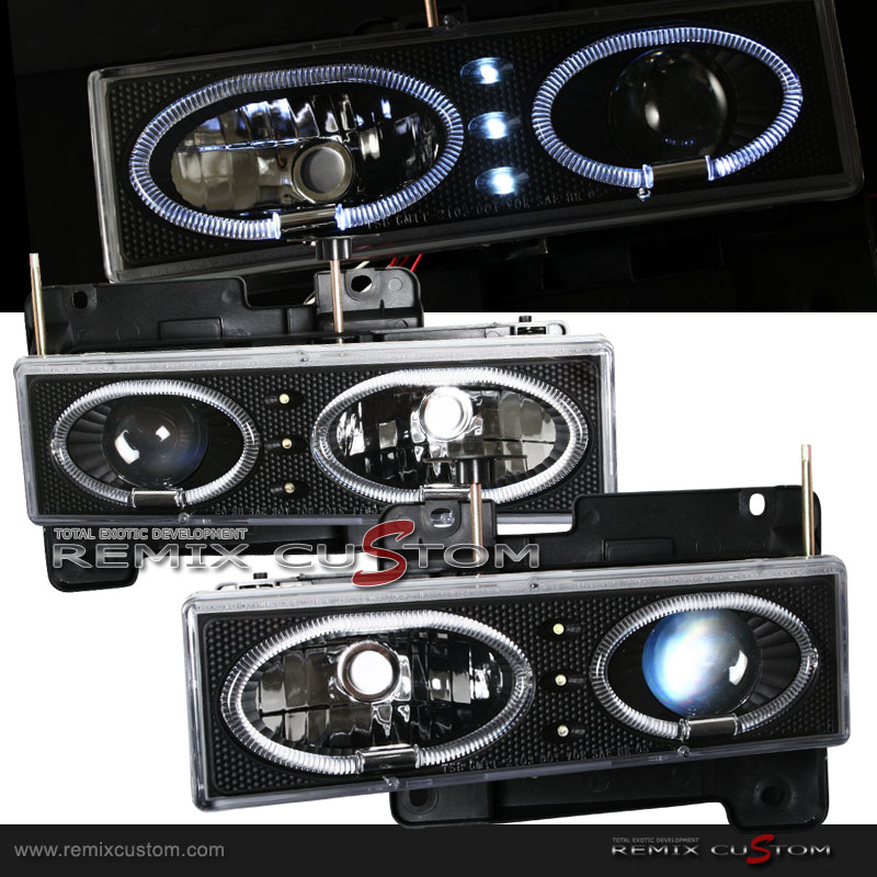88-98 Chevy C10 Halo Projector Headlights Black