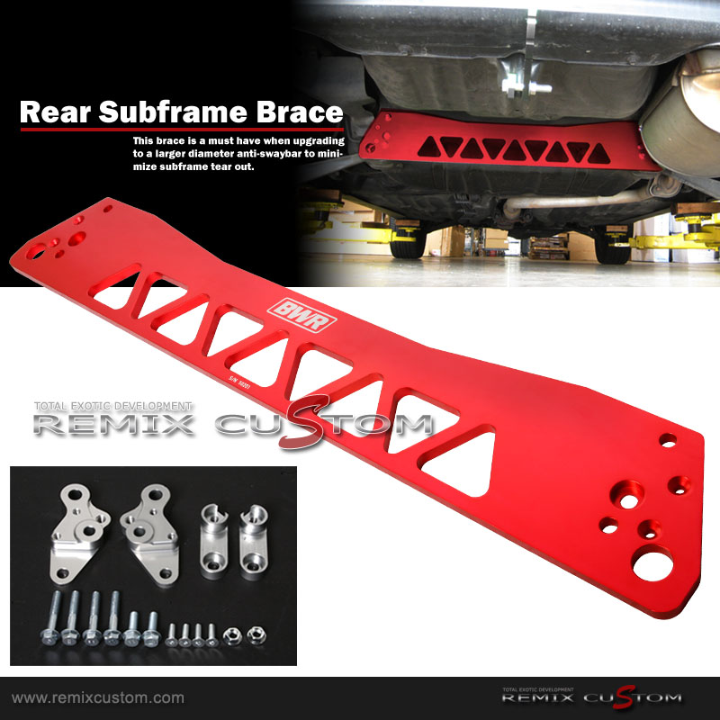 This Subframe Brace is a must have item when using a large diameter rear sway. It prevent rear subframe tear from stress from the sway bar. It work best with factory ITR / CTR rear sway bar.