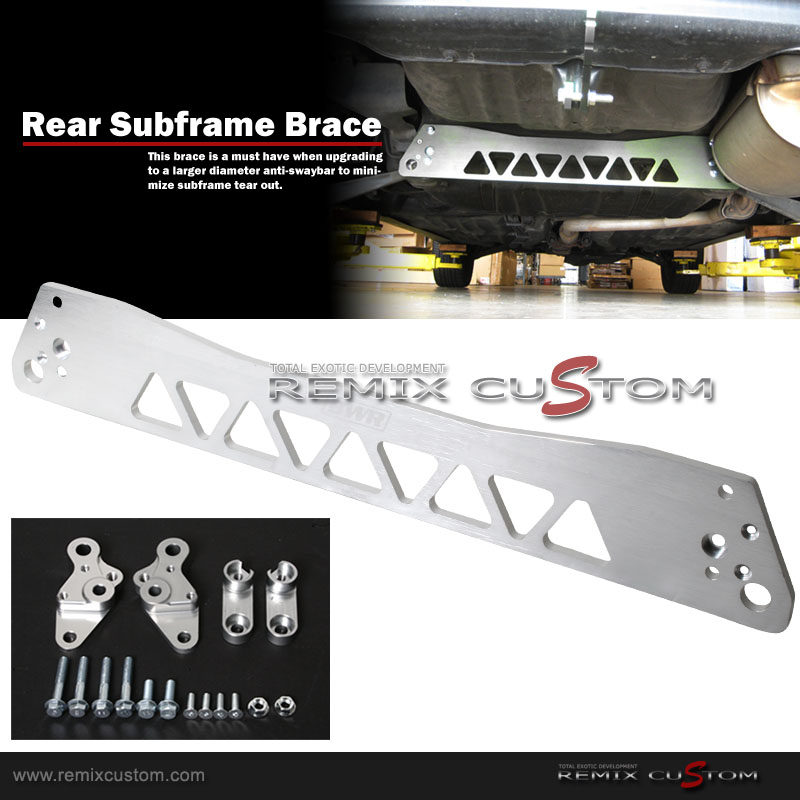 This Subframe Brace is a must have item when using a large diameter rear sway. It prevent rear subframe tear from stress from the sway bar. It work best with factory ITR / CTR rear sway bar. Fits on 92-95 Honda Civic and 94-01 Acura Integra. WILL NOT FIT ON INTEGRA TYPE R.