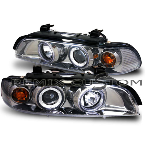 A Pair of High Quality Dual Halo Projector Headlights (Left & Right) For 97-03 BMW E39 5-Series. These headlights