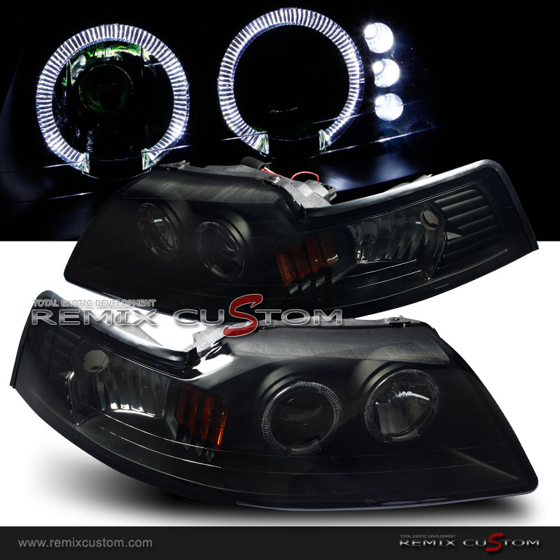 99-04 Ford Mustang Halo LED Dark Smoke Projector Headlights