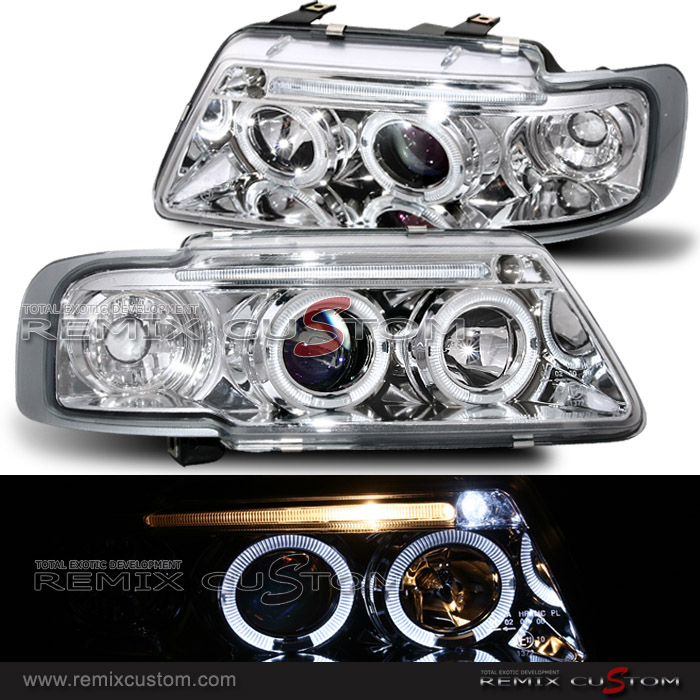 96-02 Audi A3 Dual Halo LED Projector Headlights Chrome