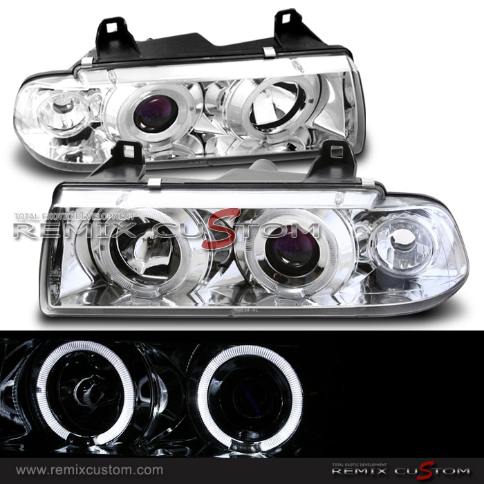 92-98 BMW 3-Series E36 2D 1pc Dual Halo Projector Headlights Chrome