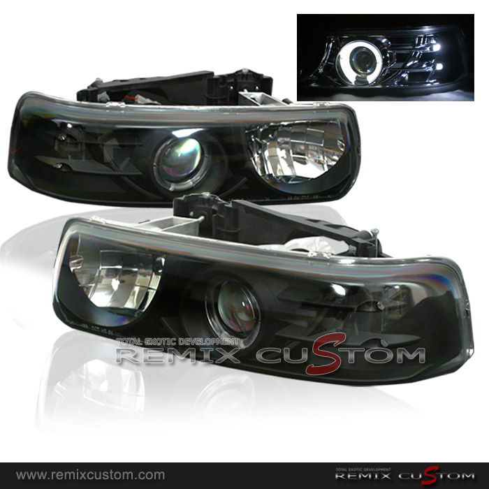 99-02 Chevy Silverado Halo Projector Headlights Black