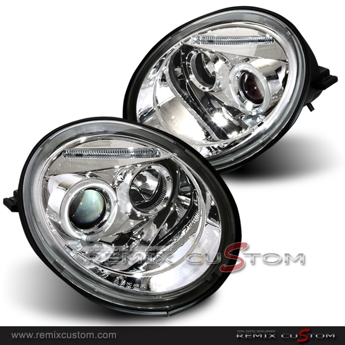 98-05 VW Beetle Halo LED Projector Headlights Chrome
