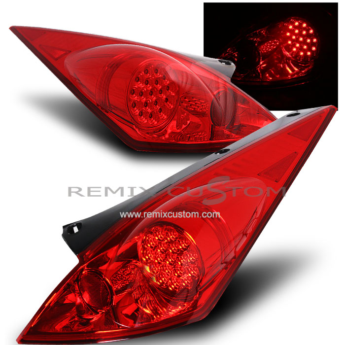 A Pair of Complete L.E.D. tail lights made for Nissan 350Z. Add the finishing touches to your vehicle with our extensive-line of high quality L.E.D tail lights. Revolutionary L.E.D technology not only improves the appearance of your vehicle, but also features brighter and safer lights. Our exclusive L.E.D. tail lights feature hassle-free plug & play installation. This set of super bright LED Tail Lights come equipped with individual super-bright LED Bulbs. Unlike other LED taillights, our taillight LED bulbs are not mounted onto a circuit board, which means that in case an LED bulb burns, you could replace the burnt bulb only, not the whole electronics of the unit. This set of lights is made with long lasting bulbs for years of satisfaction.